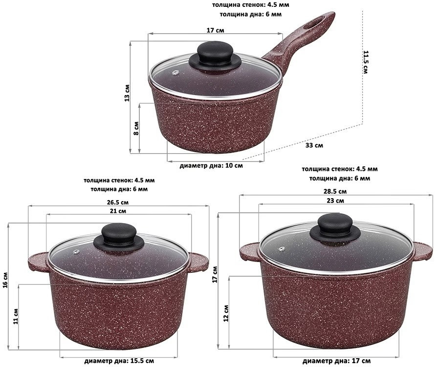 17 см, 21 см, 23 см