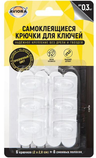 Aviora Набор крючков для ключейВ данный момент этот товар отсутствует в продаже. Возможно, у нас найдется аналогичный или похожий товар здесь. Самоклеящиеся крючки для ключей, выпущены специально для организации системы хранения небольших предметов в прихожей. Крючки выдерживают до 0,3 кг. и позволяют размещать ключи, брелоки, противоугонную цепь для велосипеда и т.д. В комплекте идут 6 крючков и 8 запасных полосок, делая этот комплект крючков многоразовым. Рекомендуются к приклеиванию на кафель, пластик, гладкую и прочную (не пыльную) основу, крашенную стену, некоторые виды обоев. |