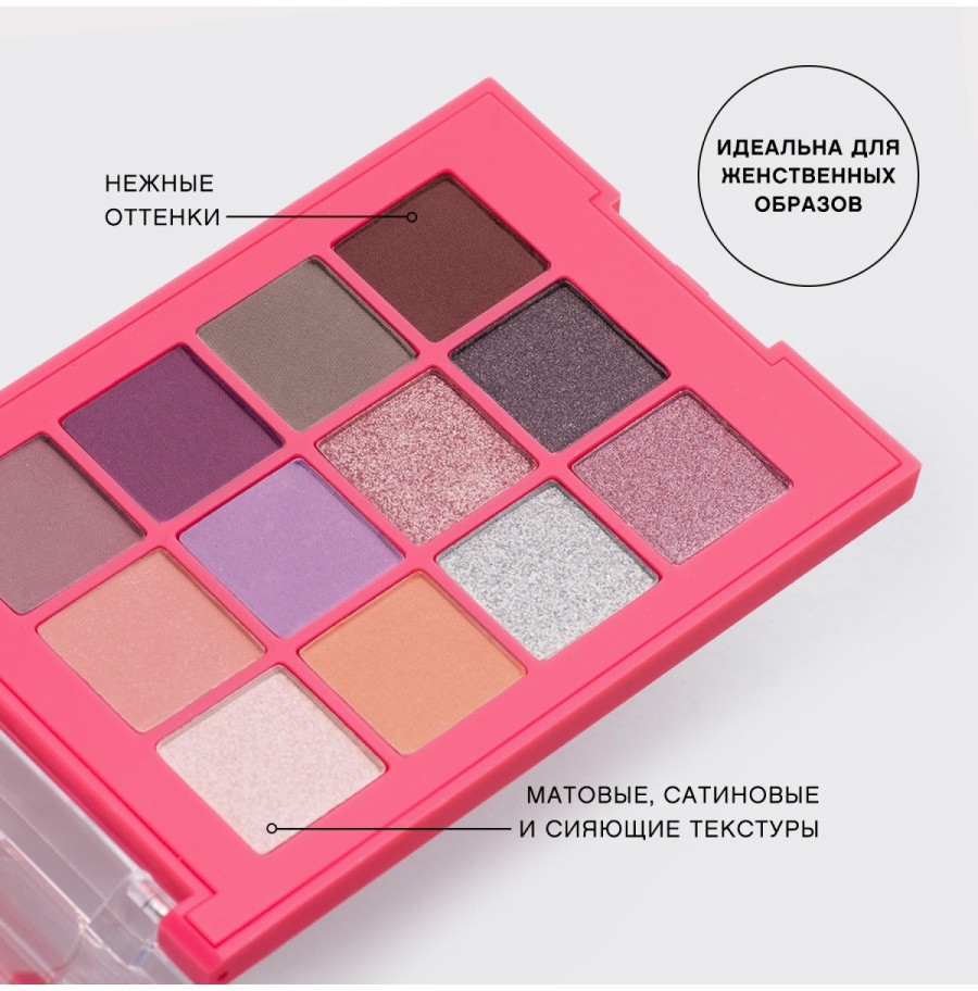 чудесные тени! на фото выглядят чуть чуть не так как в жизни, они ярче! так еще и пигментированные! с этой палеткой можно сотворить чудеса, она волшебная!