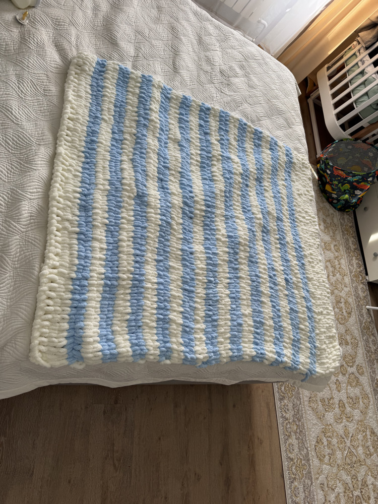 Прекрасная пряжа из которой получаются отличный детские вещи. Связала детский плед, наволочку на подушку жилет, шапочку и пинетки.