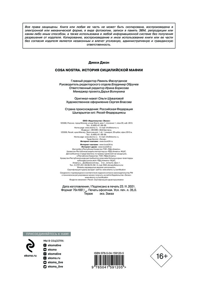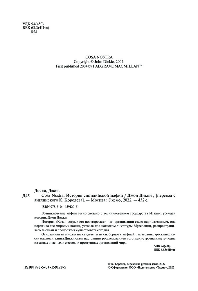 💳 Оплатить за товар можно при получении 🇰🇿 Есть бесплатная доставка по Казахстану 🎁 Копите бонусы с каждой покупки Серия: По ту сторону закона. Люди, кланы, группировки «Возникновение мафии тесно связано с возникновением государства Италия», — убежден историк Джон Дикки. |