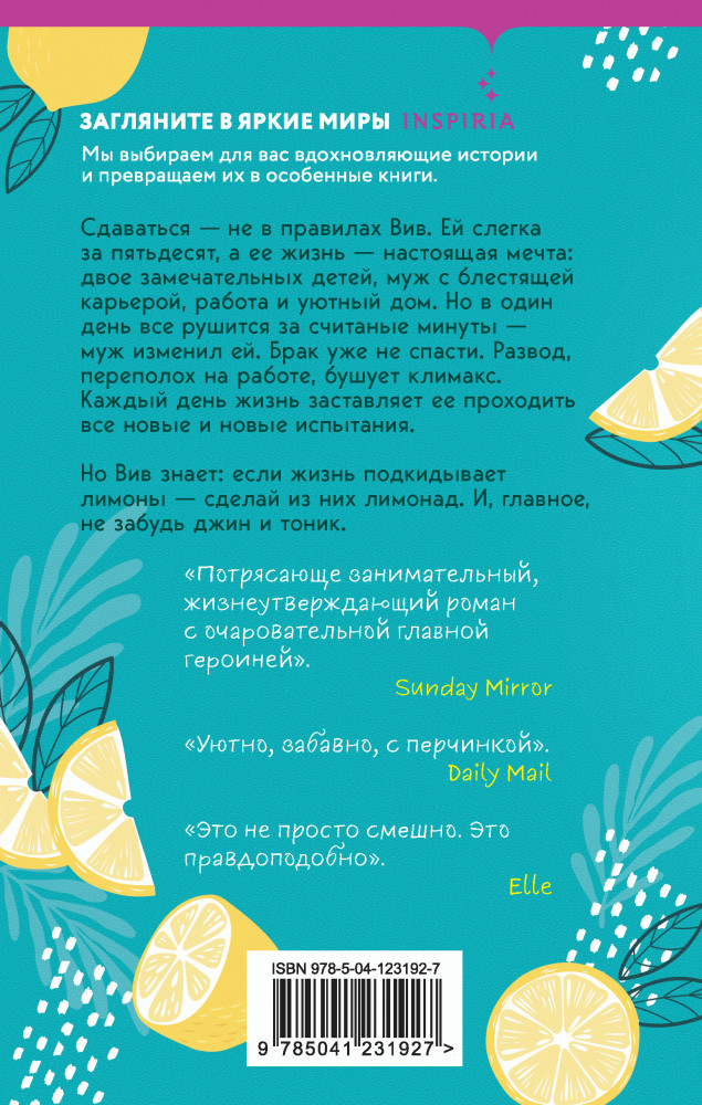 Когда жизнь подкидывает тебе лимоныВ данный момент этот товар отсутствует в продаже. Возможно, у нас найдется аналогичный или похожий товар здесь. Серия: Cupcake. Женские истории Сдаваться — не в правилах Вив. Ей слегка за пятьдесят, а ее жизнь — настоящая мечта: двое замечательных детей, муж с блестящей карьерой, работа и уютный дом. Но в один день все рушится за считанные минуты — муж изменил ей. Брак уже не спасти. Развод, переполох на работе, бушует климакс. Каждый день жизнь заставляет ее проходить все новые и новые испытания. |