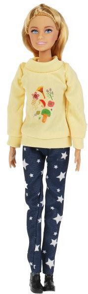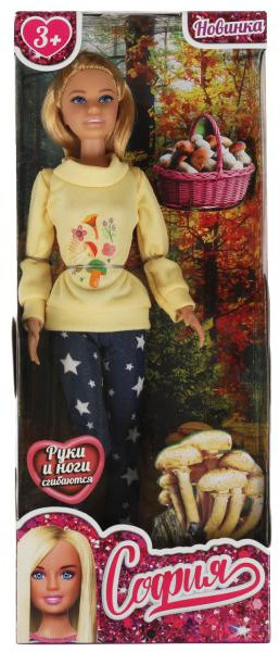 Очаровательная София собирается в лес за грибами, для похода она выбрала жёлтую толстовку с тематическим принтом и стильные джинсы со звёздами. Одежду легко снять и надеть. С такой модной куклой девочке будет интересно и весело играть: благодаря тому, что руки и ноги куклы подвижны, им можно придать любое положение. У Софии длинные красивые волосы, которые хозяйка куклы может заплетать в разные причёски. Детально проработанный дизайн игрушки вдохновит девочку на новые игровые сюжеты.
