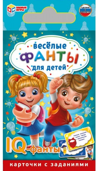 Карточная игра «Весёлые фанты для детей. IQ-фанты» ТМ «Умные игры» — отличный вариант для маленького любознайки увлекательно провести время с друзьями или семьёй.любознайки увлекательно провести время с друзьями или семьёй.