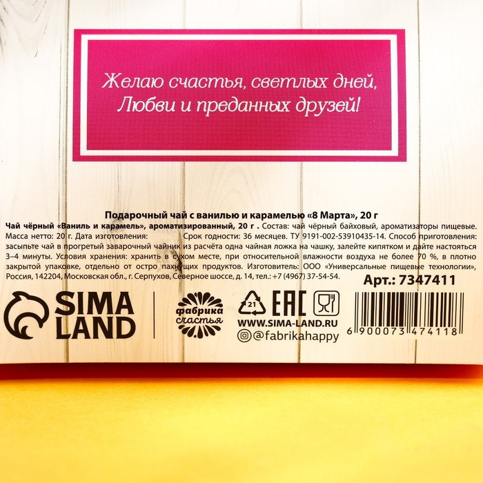 Фабрика счастья Чай чёрный с ванилью и карамелью «8 марта»-30% +25