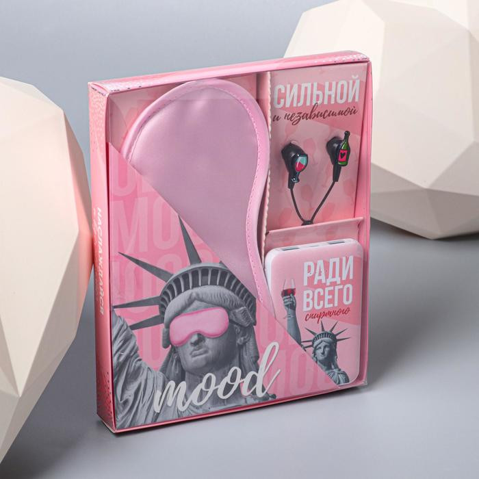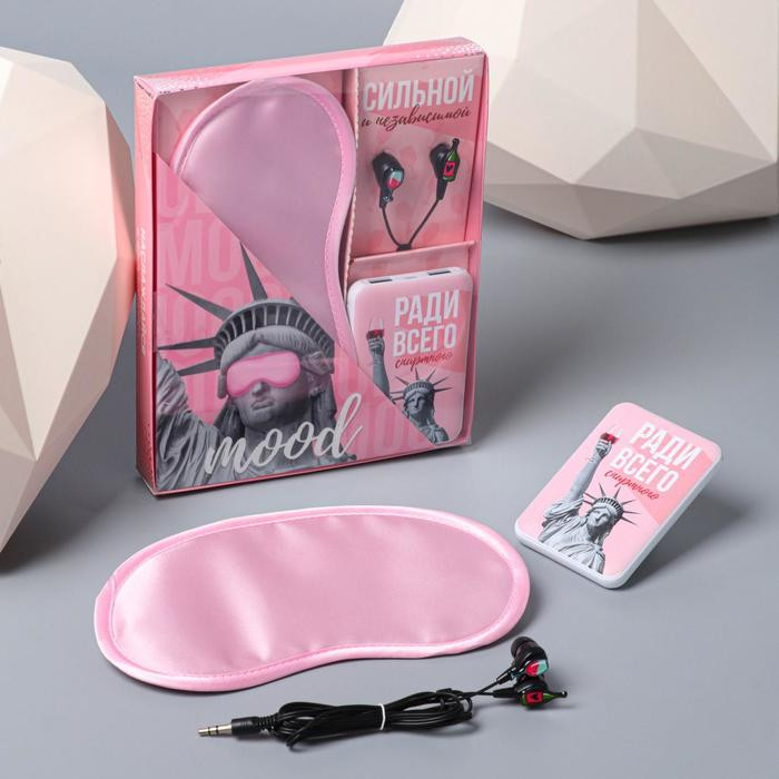 Набор будет удобен тем, кто постоянно путешествует: наушники спасть от стороннего шума, если вы находитесь в машине или самолете, power bank не даст сесть устройствам, а маска для сна спасет ваш сон в дневное время.