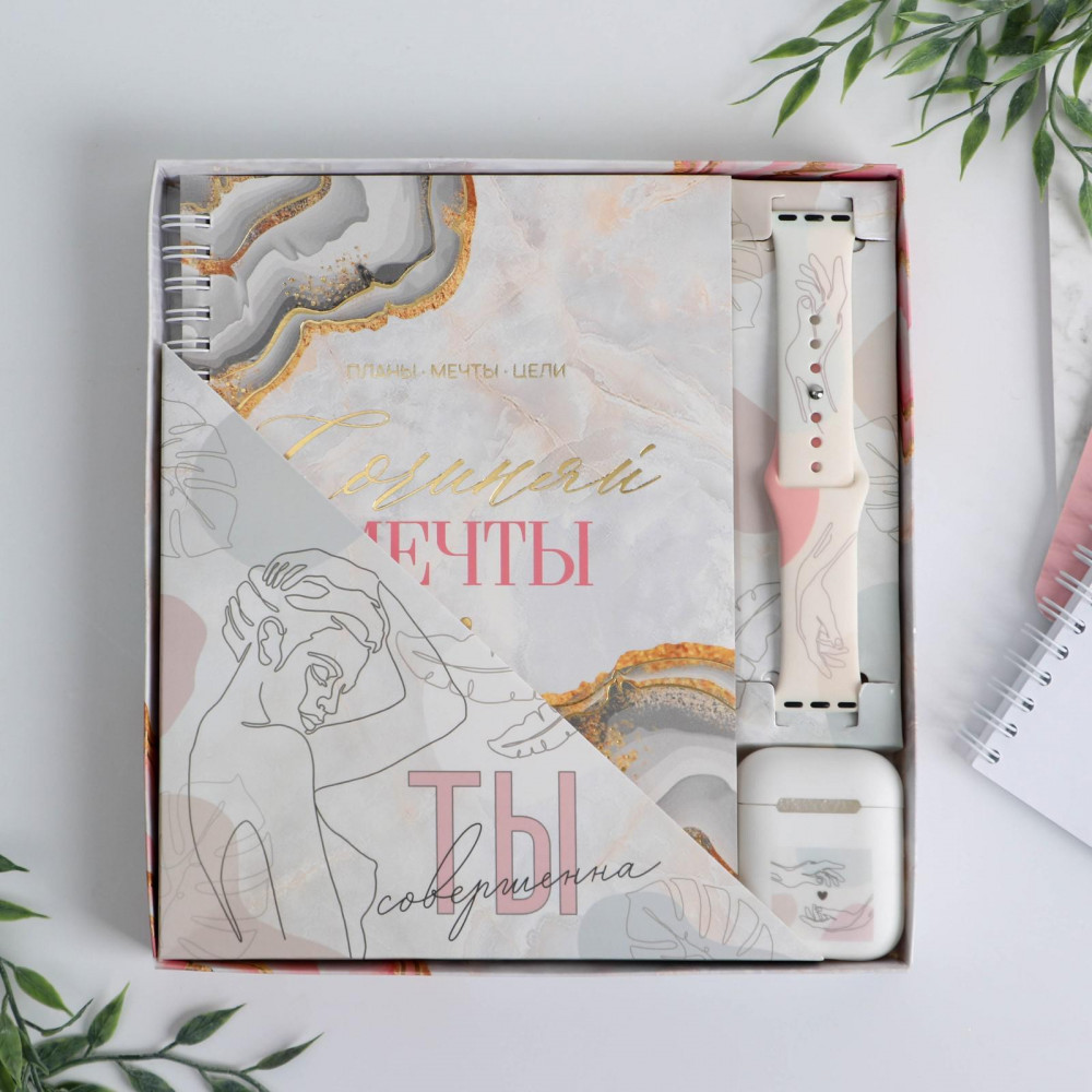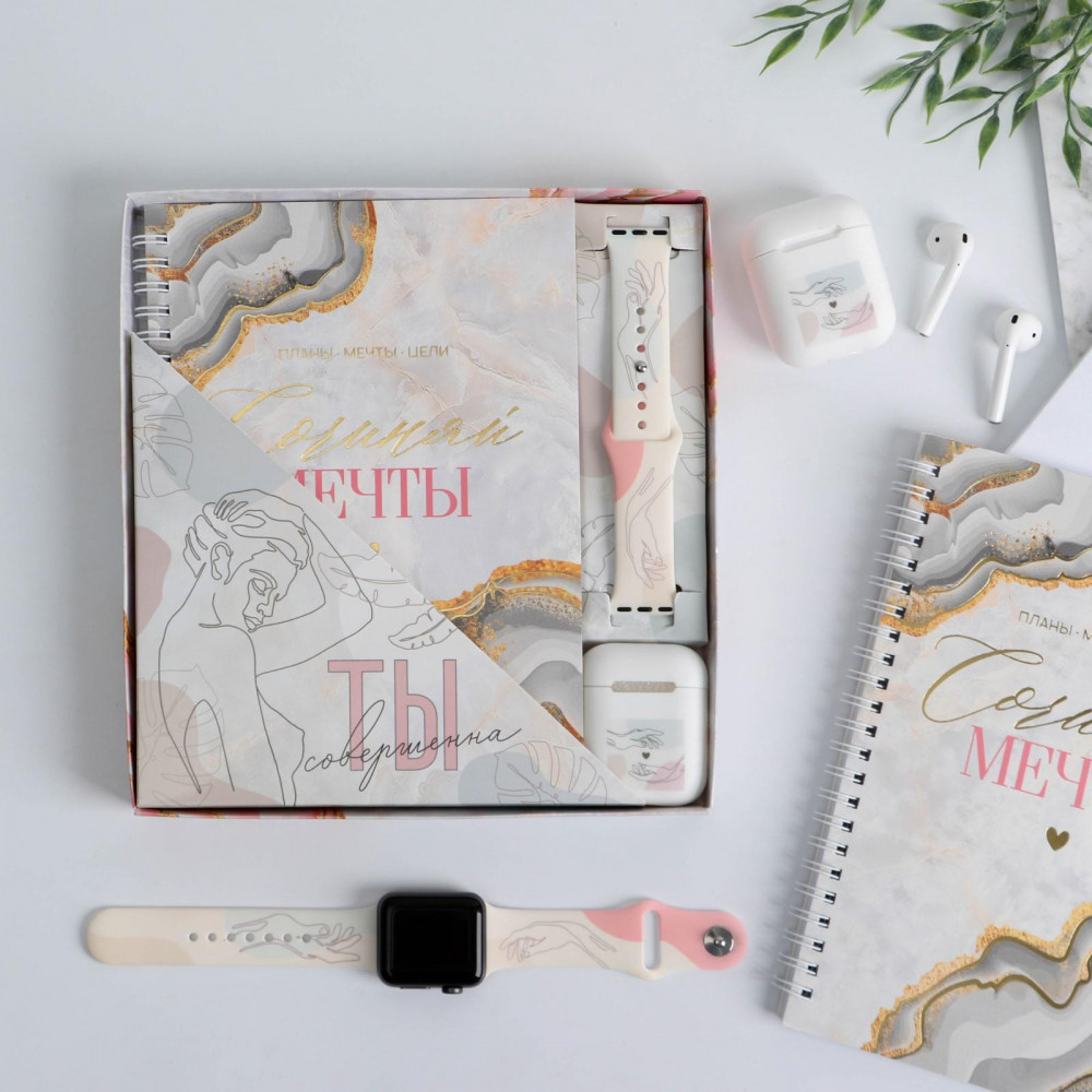 Ежедневник на кольцах с листами формата А5 поможет распланировать день и не упустить из виду важные дела, а ремень для часов для Apple Watch скрасит ожидание деловых встреч. Не забудьте украсить свой футляр для наушников с помощью резинового чехла.