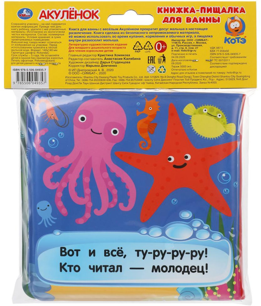 УМка Книжка-пищалка для ванны «Котэ-тв. Акулёнок»В данный момент этот товар отсутствует в продаже. Возможно, у нас найдется аналогичный или похожий товар здесь. Серия: Книга-пищалка для ванны Книжка-пищалка для ванны «Котэ-тв. Акулёнок» превратит купание ребёнка в весёлую игру: |