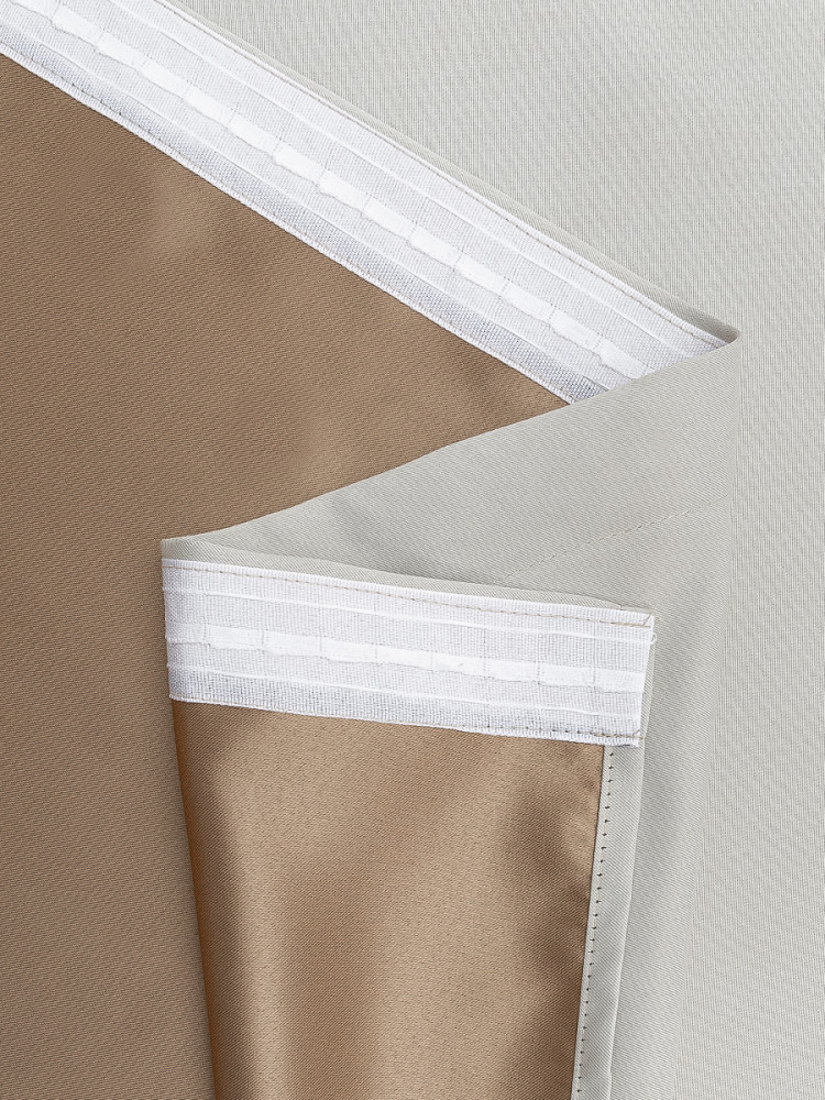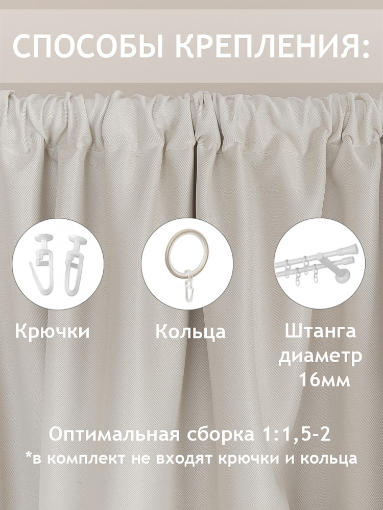 Штора очень красивая, плотная. Лента крепления пришита высоко, крючки провисают, но это не критично.