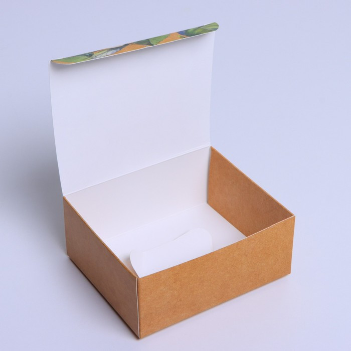 Коробочка в реале выглядит так же, как на фото-витрине сайта. Все её Размеры соответствуют с описанием на сайте. Принт чёткий, но НЕяркий.