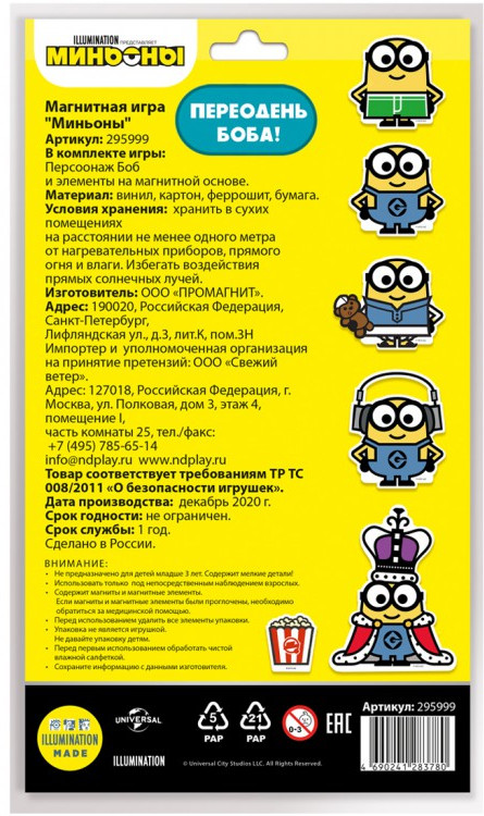 💳 Оплатить за товар можно при получении 🇰🇿 Есть бесплатная доставка по Казахстану от 1 дня 🎁 Копите бонусы с каждой покупки Серия: Миньоны Увлекательная магнитная игра «Миньоны. Боб» для детей. |