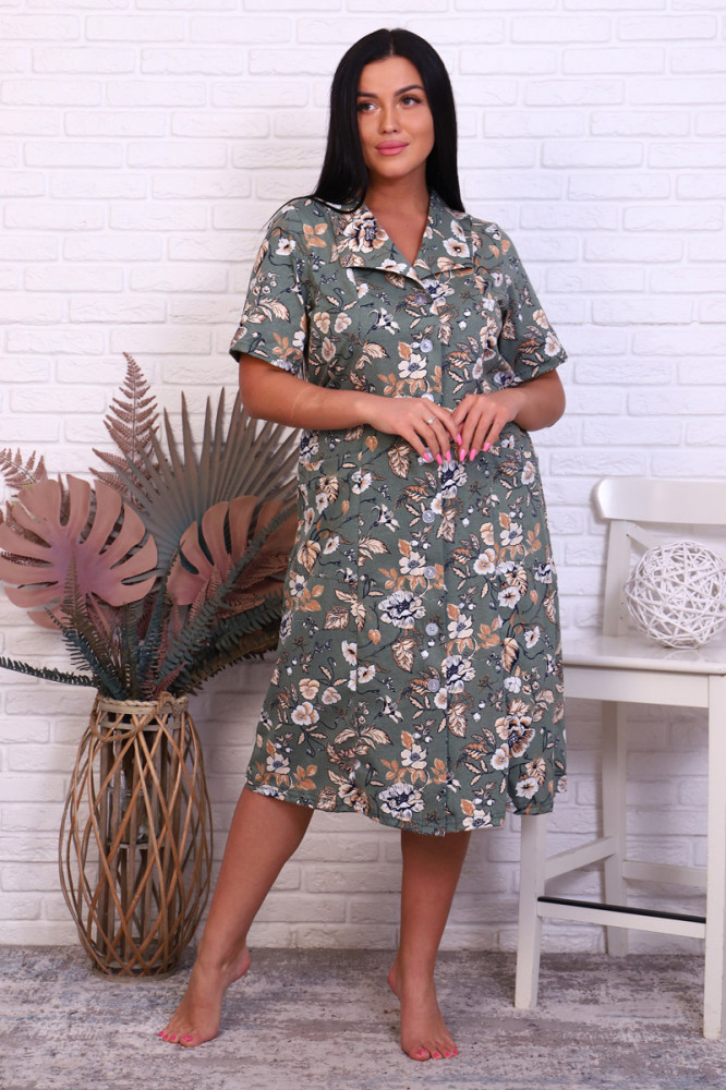 хороший качественный халат на взрослую даму, на пуговицах, есть одна запасная пуговка, тонкий халат на лето само то
