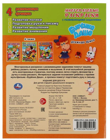 УМка Многоразовая раскраска с прописями и развивающими заданиями «Бурёнка Даша. Весёлая прогулка»-30% +16