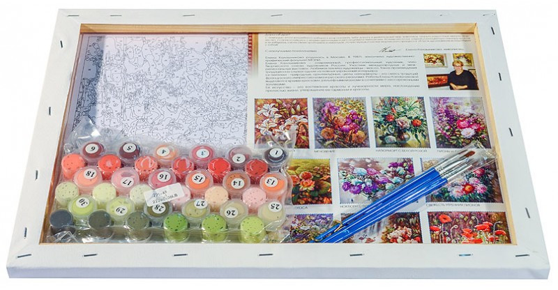 Внимание! Краски могут подсохнуть или быть слишком густыми — это не является браком, в этом случае добавьте небольшое количество воды и хорошо размешайте краску. Рекомендуем раскрашивать картину без длительных перерывов, чтобы краска в баночках не высыхала.
