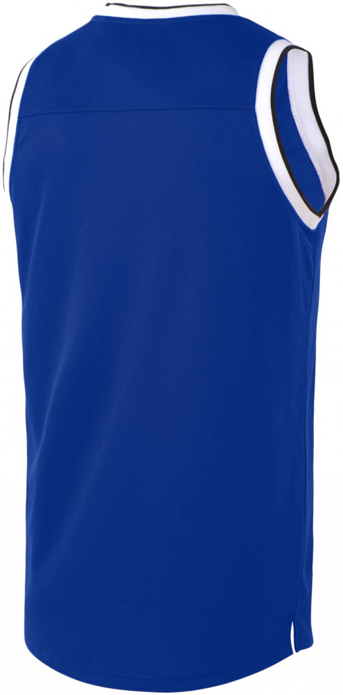 Верхняя часть майки для баскетбола имеет улучшенную вентиляцию для большего комфорта во время интенсивных нагрузок. Конструкция не ограничивает движений: баскетбольная майка имеет свободный крой; боковые швы выполнены с наклоном и оканчиваются небольшими разрезами; задняя часть изделия удлинена. С правой стороны на груди расположена вышивка «Jögel». Особенностью модели является обработка V — образной горловины и проймы контрастным рубчатым материалом с полосой, который отлично сочетается с отделкой на шортах «Jögel PerformDry Division Star».