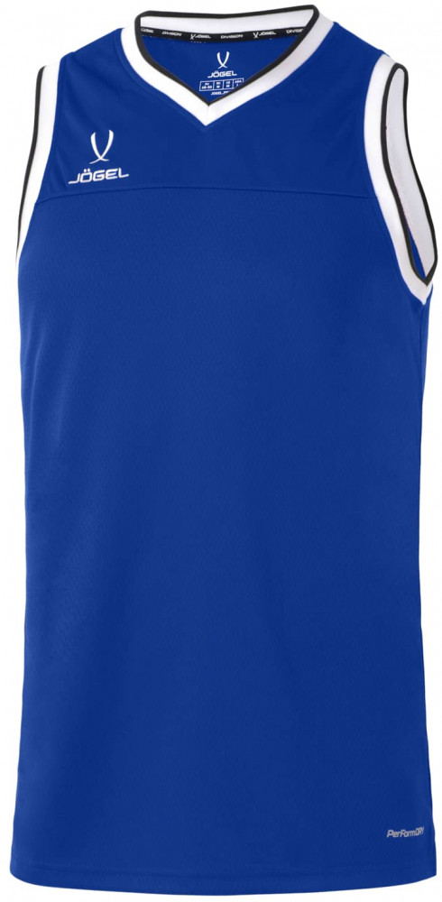 Верхняя часть майки для баскетбола имеет улучшенную вентиляцию для большего комфорта во время интенсивных нагрузок. Конструкция не ограничивает движений: баскетбольная майка имеет свободный крой; боковые швы выполнены с наклоном и оканчиваются небольшими разрезами; задняя часть изделия удлинена. С правой стороны на груди расположена вышивка «Jögel». Особенностью модели является обработка V — образной горловины и проймы контрастным рубчатым материалом с полосой, который отлично сочетается с отделкой на шортах «Jögel PerformDry Division Star».