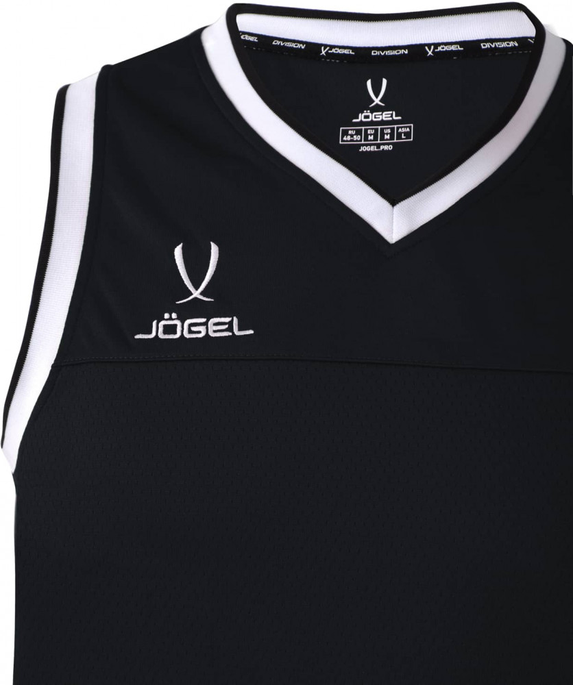Верхняя часть майки для баскетбола имеет улучшенную вентиляцию для большего комфорта во время интенсивных нагрузок. Конструкция не ограничивает движений: баскетбольная майка имеет свободный крой; боковые швы выполнены с наклоном и оканчиваются небольшими разрезами; задняя часть изделия удлинена. С правой стороны на груди расположена вышивка «Jögel». Особенностью модели является обработка V — образной горловины и проймы контрастным рубчатым материалом с полосой, который отлично сочетается с отделкой на шортах «Jögel PerformDry Division Star».