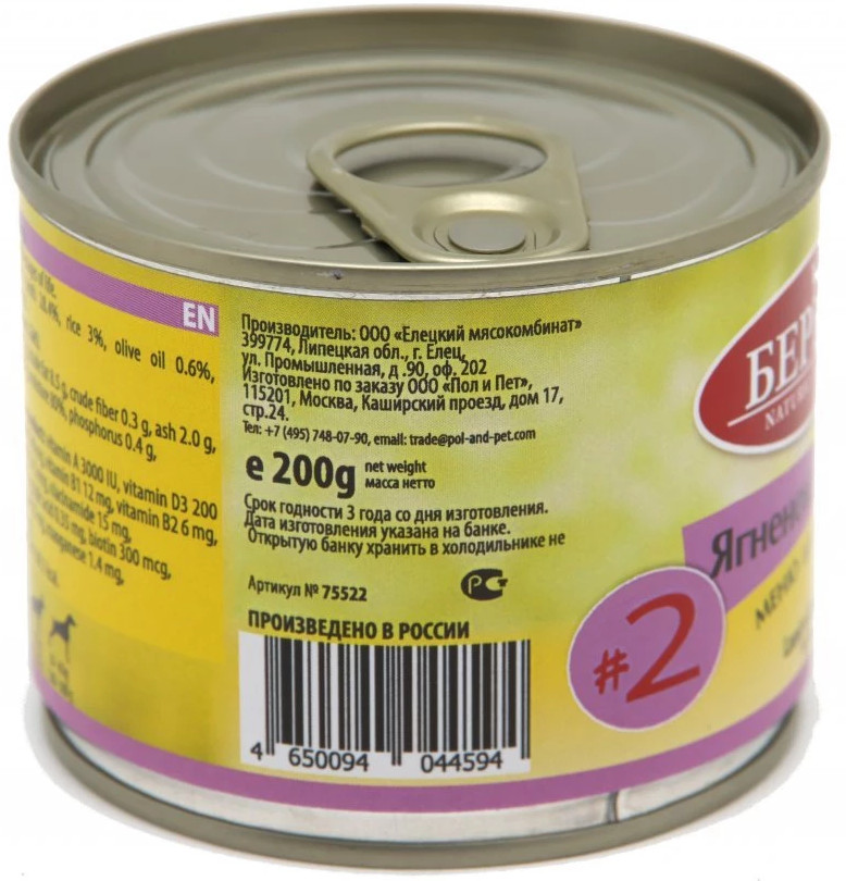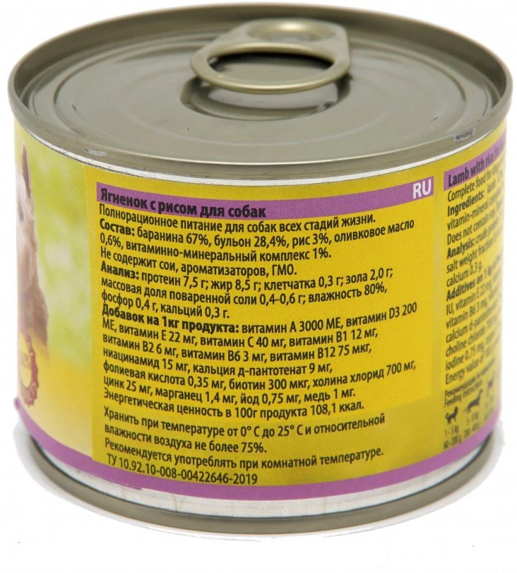 Отзывы «Консервы для собак «Ягненок с рисом»»