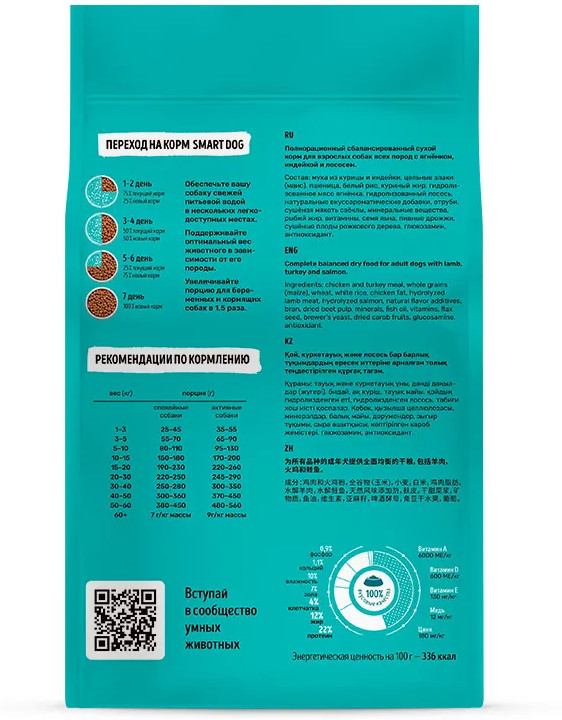 Smart Dog Корм для взрослых собак с ягнёнком, лососем, индейкой