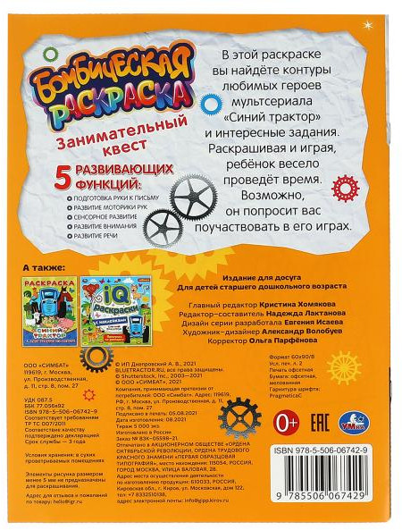 💳 Оплатить за товар можно при получении 🇰🇿 Есть бесплатная доставка по Казахстану от 1 дня 🎁 Копите бонусы с каждой покупки Бомбическая раскраска «Синий трактор. Занимательный квест» станет отличным подарком для юных художников: |