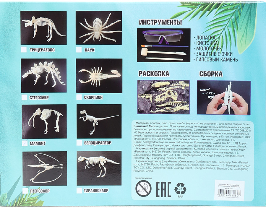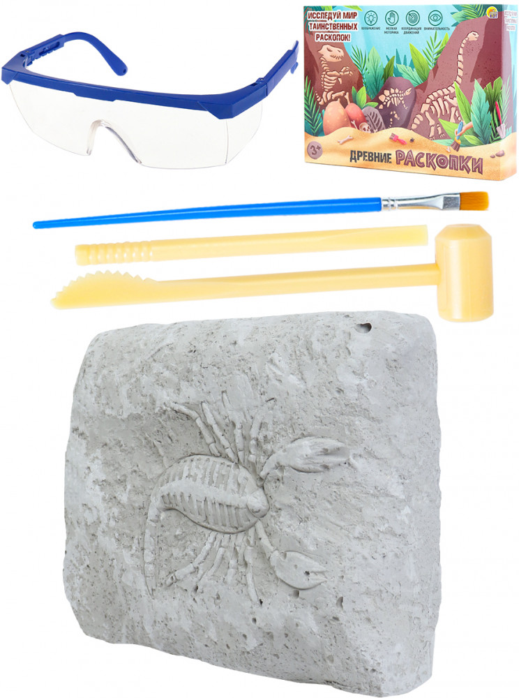 Сделайте Вашего ребенка маленьким исследователем в мире таинственных раскопок. Данный набор археолога «Скорпион» включает в себя гипсовый камень, 3 инструмента, очки и инструкцию.