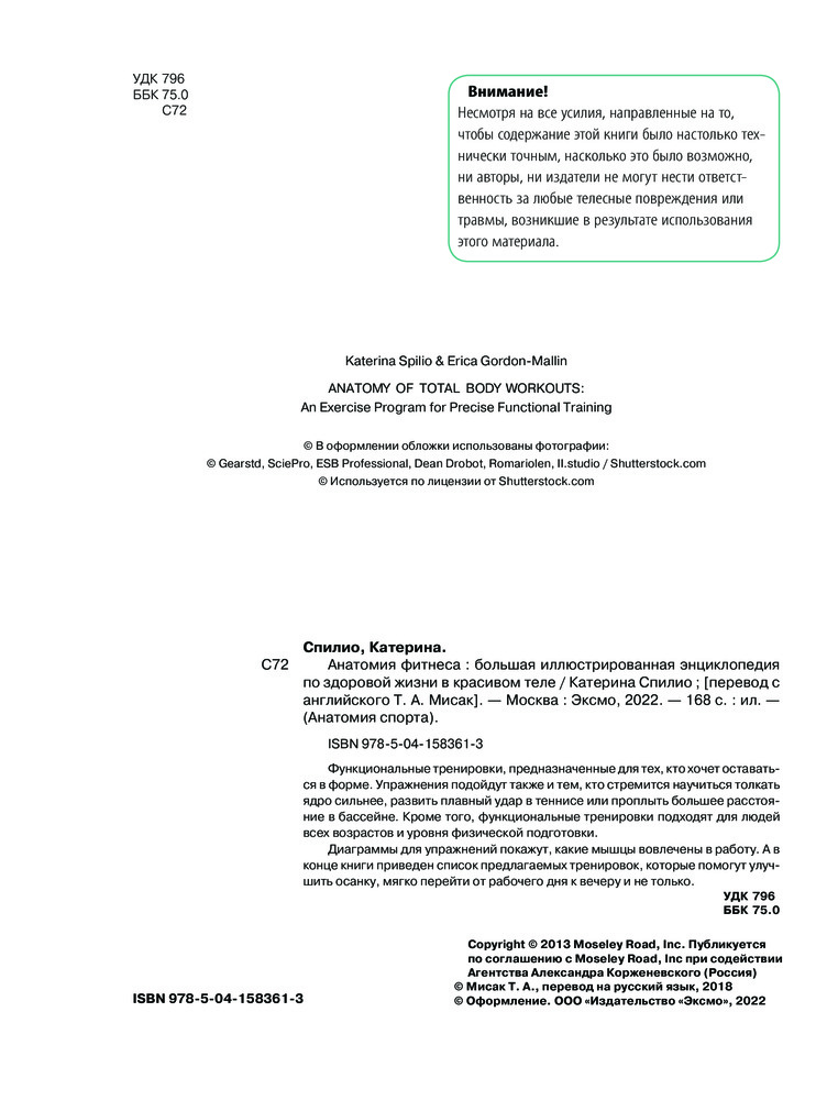 Анатомия фитнеса. Большая иллюстрированная энциклопедия по здоровой жизни в красивом телеВ данный момент этот товар отсутствует в продаже. Возможно, у нас найдется аналогичный или похожий товар здесь. Серия: Анатомия спорта Функциональные тренировки, предназначенные для тех, кто хочет оставаться в форме. Упражнения подойдут также и тем, кто стремится научиться толкать ядро сильнее, развить плавный удар в теннисе или проплыть большее расстояние в бассейне. Кроме того, функциональные тренировки подходят для людей всех возрастов и уровня физической подготовки.Диаграммы для упражнений покажут, какие мышцы вовлечены в работу. А в конце книги приведен список предлагаемых тренировок, которые помогут улучшить осанку, мягко перейти от рабочего дня к вечеру и не только. |