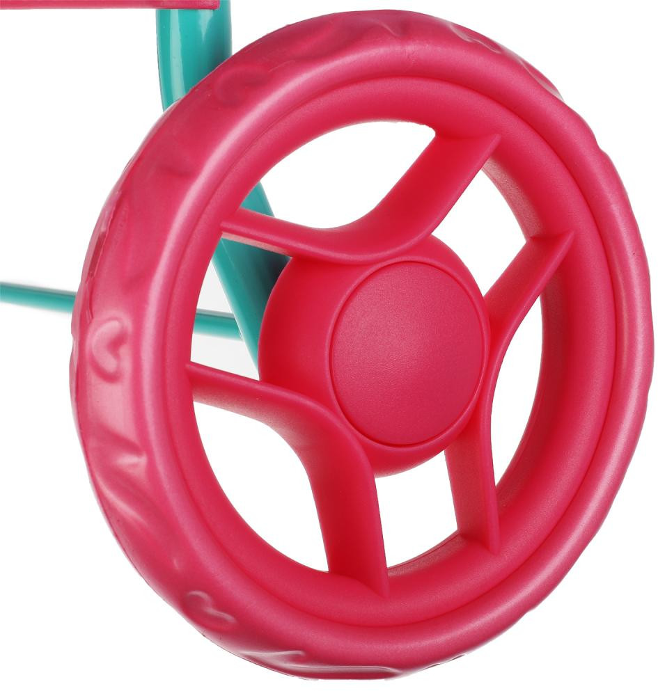 Эта яркая коляска с изображением персонажей любимого мультсериала непременно понравится вашей принцессе. Игрушка сделана из облегчённых материалов, чтобы ребёнок мог самостоятельно переносить её. Ручка коляски оснащена специальной рельефной накладкой, чтобы девочке было удобно её держать. Благодаря наличию у коляски корзинки, маленькая мама может взять с собой на прогулку всё самое необходимое для своего малыша, а ограничительные ремни помогут надёжно закрепить его.