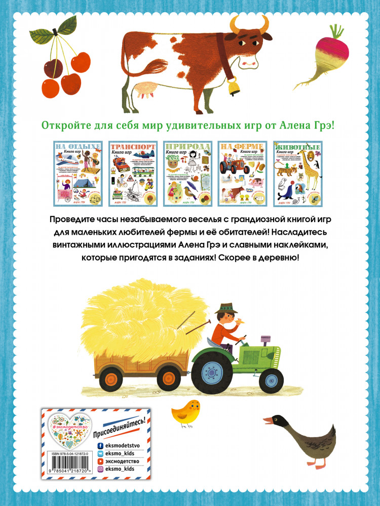 💳 Оплатить за товар можно при получении 🇰🇿 Есть бесплатная доставка по Казахстану 🎁 Копите бонусы с каждой покупки Серия: Грандиозные книги игр Алена Грэ В этой чудесной книге на тему фермы найдётся чем занять вашего малыша. Ребёнка ждёт масса увлекательных заданий, в их числе рисунки по точкам, поиск отличий, раскраски, головоломки и лабиринты. 2 страницы наклеек помогут малышу справиться с некоторыми заданиями, а также станут увлекательным упражнением, в котором можно развивать фантазию, придумывая истории и подбирая в них место каждой наклейке. |