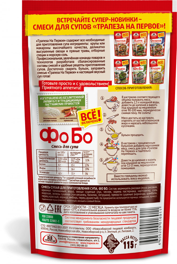 Трапеза Смесь для супа «Фо Бо»+24 быстрое приготовление хорошая смесь неаутентичный вкус внешний вид