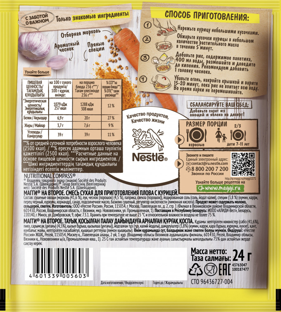 Maggi Приправа для приготовления плова с курицей+13 удобное использование быстро готовится рис рассыпчатый приятный вкус