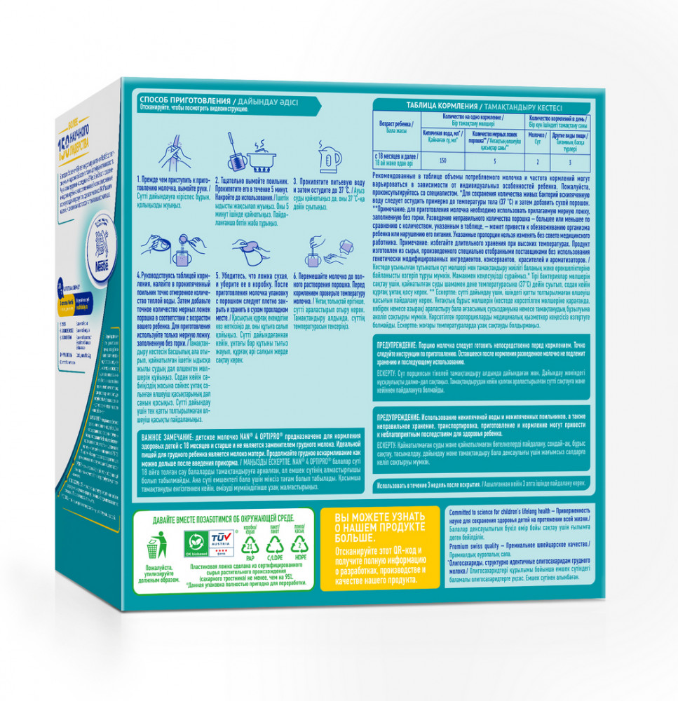 💳 Оплатить за товар можно при получении 🇰🇿 Есть бесплатная доставка по Казахстану 🎁 Копите бонусы с каждой покупки Благодаря более чем 150-летнему опыту компания Nestlé неустанно остается научным лидером в области питания детей раннего возраста. Результаты передовых исследований Nestlé в области сохранения здоровья ребенка на протяжении всей жизни, положенные в основу создания продуктов, сделали молочко NAN® вашим надежным союзником в вопросах питания вашего малыша. |