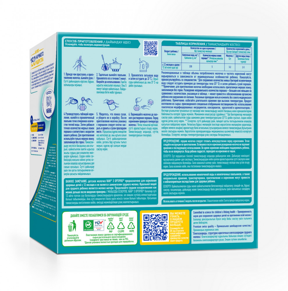 💳 Оплатить за товар можно при получении 🇰🇿 Есть бесплатная доставка по Казахстану от 1 дня 🎁 Копите бонусы с каждой покупки NAN 3 optipro — специально разработанное детское молочко для питания детей от 1 года до 1,5 лет, созданное на основе данных, полученных благодаря исследованиям Nestle в области обеспечения здоровья детей на протяжении всей жизни. Молочко содержит уникальную комбинацию ингредиентов: OPTIPRO, 2’FL и BL Probiotic, которые поддержат здоровое развитие вашего ребенка, помогая вам заложить крепкую основу для будущего здоровья Вашего ребенка. |