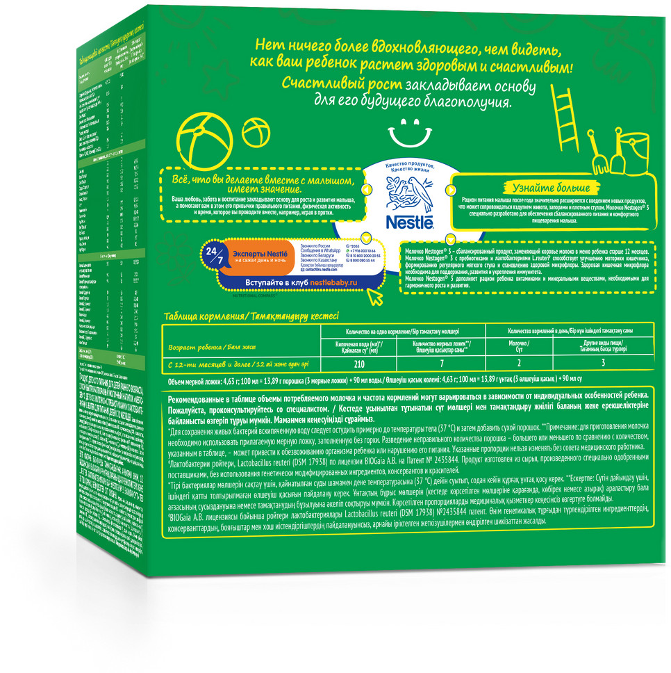Обезжиренное молоко, мальтодекстрин, сыворотка молочная деминерализованная, смесь растительных масел (низкоэруковое рапсовое, подсолнечное, подсолнечное высокоолеиновое, кокосовое), молочный жир, лактоза, пребиотики (галактоолигосахариды (гос) и фруктоолигосахариды (фос)), кальция цитрат, эмульгатор (соевый лецитин), калия цитрат, кальциевые соли ортофосфорной кислоты (кальция фосфат), натрия цитрат, витамины (l-аскорбат натрия, аскорбилпальмитат (с), dl-альфа-токоферола ацетат (е), d-пантотенат кальция (пантотеновая кислота), никотинамид (pp), тиамина мононитрат (b1), ретинола ацетат (a), пиридоксин гидрохлорид (b6), рибофлавин (b2), d3 холекальциферол (d), фитомаменадион (к), фолиевая кислота, d-биотин (биотин), цианкобаламин (в12)), натриевые соли ортофосфорной кислоты (натрия фосфат), калиевые соли ортофосфорной кислоты (калия фосфат), магния цитрат, регулятор кислотности гидроксид калия, культура лактобактерий l.reuteri, железа сульфат, цинка сульфат, меди сульфат, калия йодид, натрия селенат. упаковано в модифицированной атмосфере с азотом. Продукт может содержать рыбий жир.