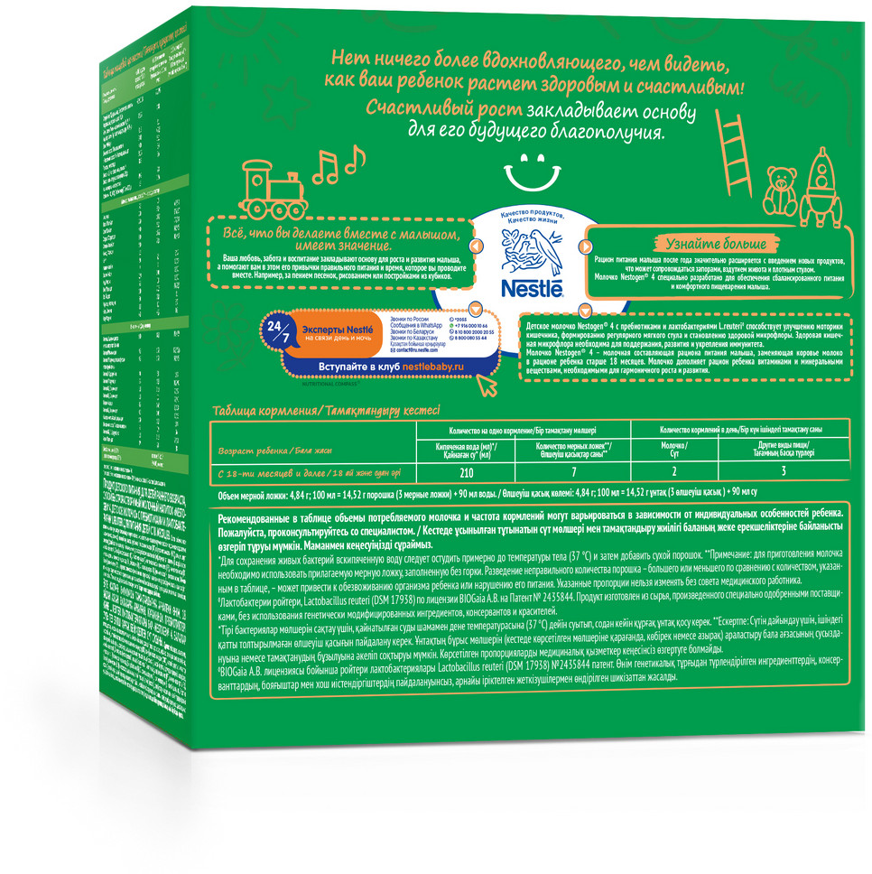 💳 Оплатить за товар можно при получении 🇰🇿 Есть бесплатная доставка по Казахстану от 1 дня 🎁 Копите бонусы с каждой покупки Серия: Premium Детское молочко Nestogen 4 было специально разработано для обеспечения сбалансированного здорового питания и комфортного пищеварения малыша. Молочко Nestogen 4 с пребиотиками и уникальными лактобактериями L.reuteri способствует улучшению моторики кишечника, формированию регулярного мягкого стула и становлению здоровой микрофлоры. Здоровая кишечная микрофлора необходима для подержания, развития и укрепления иммунитета. Молочко Nestogen 4 молочная составляющая рациона питания малыша, заменяющая коровье молоко в рационе ребенка старше 18 месяцев. Детское молочко Nestogen 4 дополняет рацион ребенка питательными веществами, необходимыми для его оптимального роста и развития. |