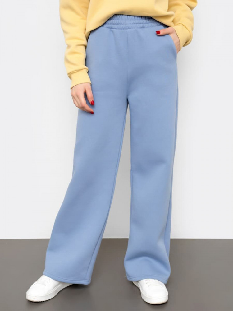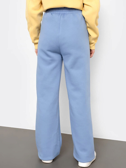 Брюки расклешенного силуэта из трикотажного футера с теплым подчесом. Пояс с эластичной тесьмой внутри и регулировочным шнуром-завязкой. Есть боковые карманы. Эти брюки — идеальный компонент для вашего стильного образа!