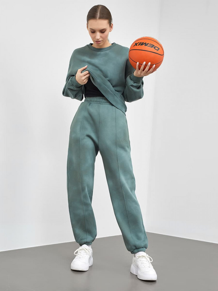 Универсальные джоггеры из футера с теплым подчесом. В составе полотна преобладает натуральный хлопок, прочности добавляет полиэстер. Брюки имеют свободный силуэт, что дарит полный комфорт во время любых активностей — спорта, прогулок, путешествий. Удобные боковые карманы, высокая линия талии, эластичный пояс, внутренний шнурок-завязка. Уютно, удобно, стильно!