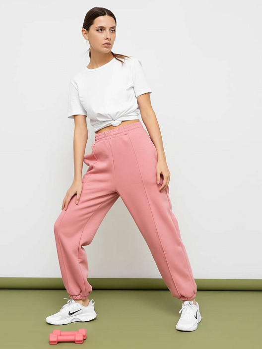 Универсальные джоггеры из футера с теплым подчесом. В составе полотна преобладает натуральный хлопок, прочности добавляет полиэстер. Брюки имеют свободный силуэт, что дарит полный комфорт во время любых активностей — спорта, прогулок, путешествий. Удобные боковые карманы, высокая линия талии, эластичный пояс, внутренний шнурок-завязка. Уютно, удобно, стильно!