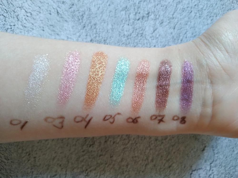Оттенки 05 и 08. Сияние сумасшедшее, я в восторге! 05 оттенок вообще что-то космическое. Так красиво переливается что отвал башки просто! Не пожалела что взяла. Использую вместе с обычными тенями, добавляю в серединку. Мне понравились, облизываюсь теперь на другие оттенки.😁