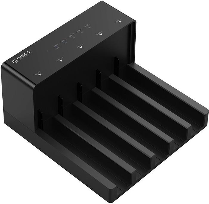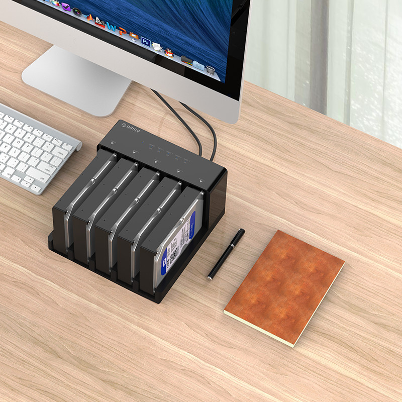 Orico 6558US3-C-BK настольная док станция для подключения жестких дисков форм фактора 2,5 и 3,5 дюймов и SSD дисков. Устройство получило высокоскоростные интерфейсы USB3.0 и универсальный SATA обеспечивают передачу данных со скоростью 5 Гбит/сек. Док станция может работать с емкостью до 50 ТБ, 10 ТБ на один диск.