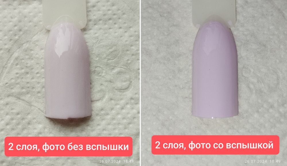 Хорошая консистенция,59 тон ложится ровно,04 тон полосит на 2 слоя. На фото нанесение в 2 слоя.