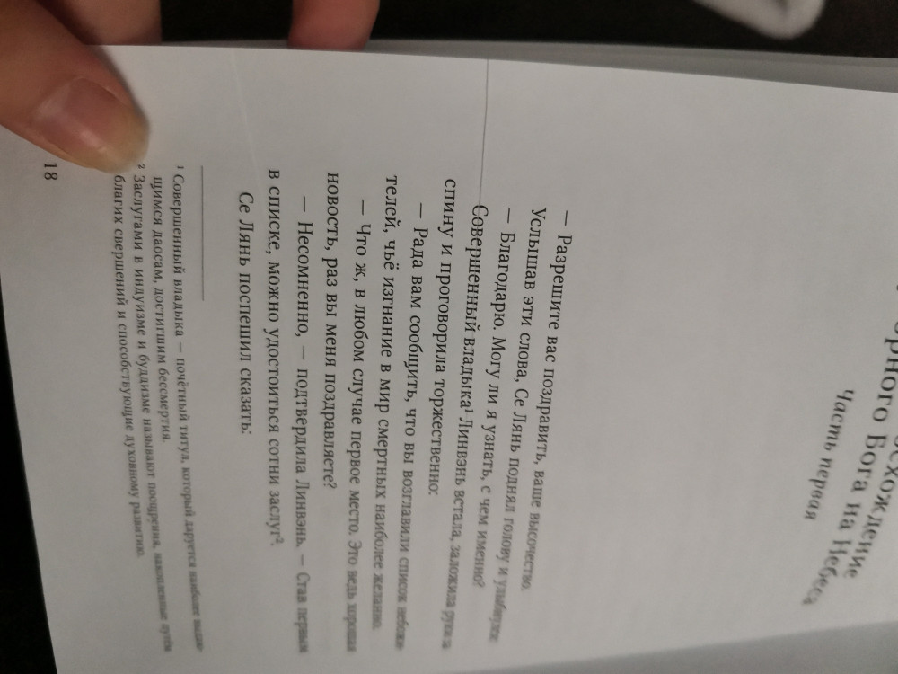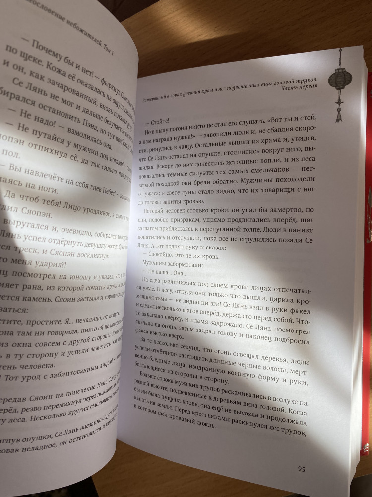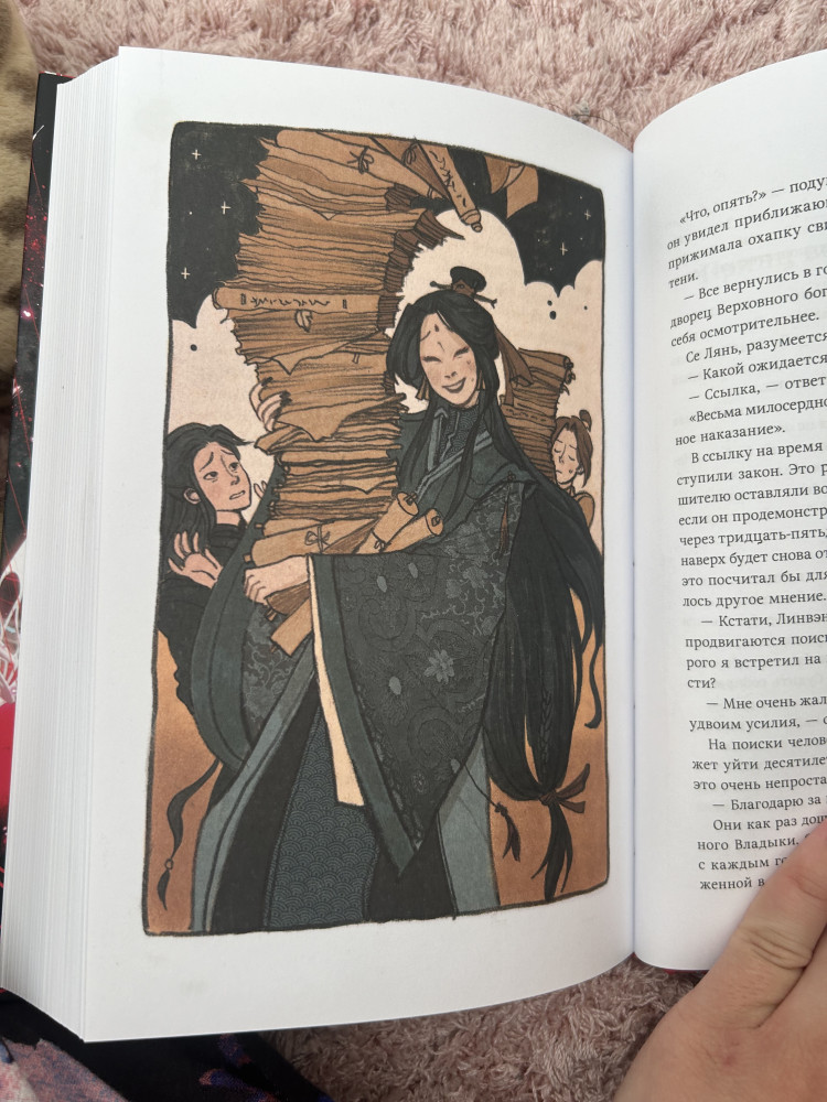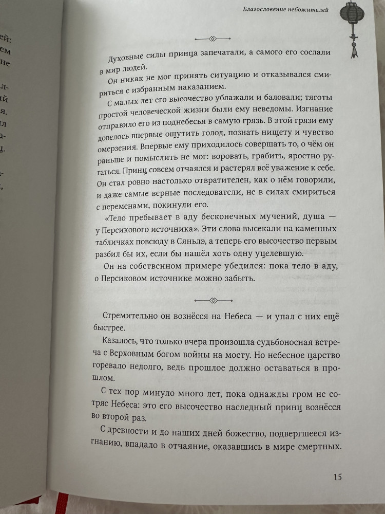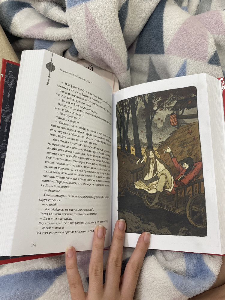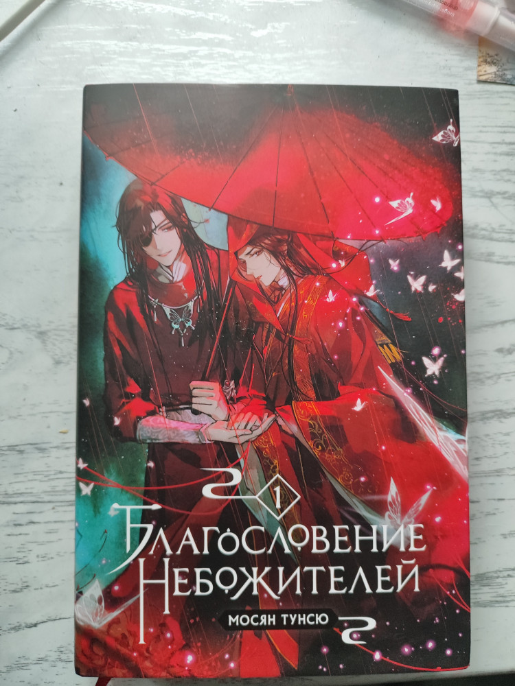 Поверить не могу, что выпустили "Благословение небожителей" в переплёте. Книга качественная и очень красивая. Белые страницы плотные и ещё есть иллюстрации. Я в восторге! Вот бы ещё "Магистр дьявольского культа" вышел в переплёте.