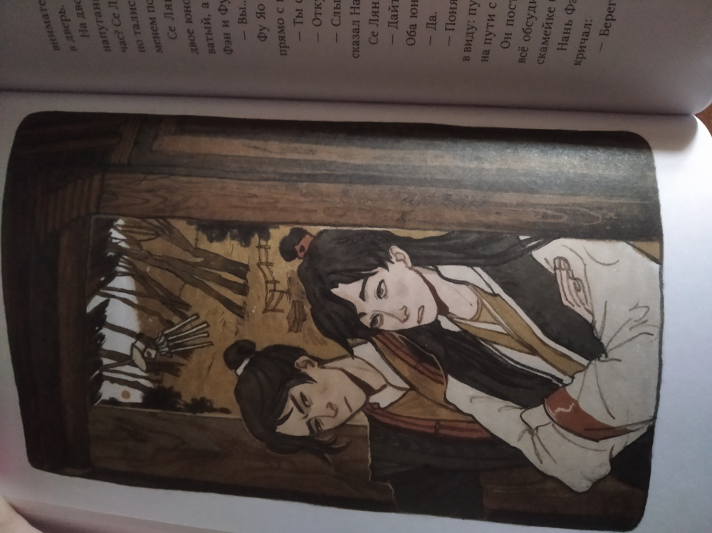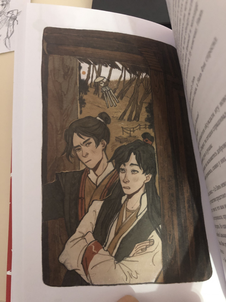 Любимая новелла Мосян. Отношения Хуаляней до слез душевные. После электронного варианта,наконец смогла приобрести печатный вариант. Книга очень качественная и плотная. Бумага хорошая и белоснежная. А обложка! Ну мед. Иллюстрации очень хорошо передают атмосферу. Рекомендую к прочтению!