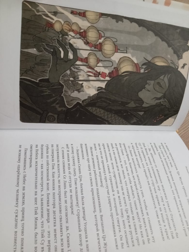 Книжка интересная, легко читается. Впервые читаю Китайское фэнтези. Очень даже интересно Оформление книги - просто космос, бумага белая, плотная. Арты тоже прикольные.Не была знакома изначально с данными циклом, так что претензий к артам и т.д у меня нет Корешок книги немного помят и обложка чуть-чуть покарябана.А так книга цела.