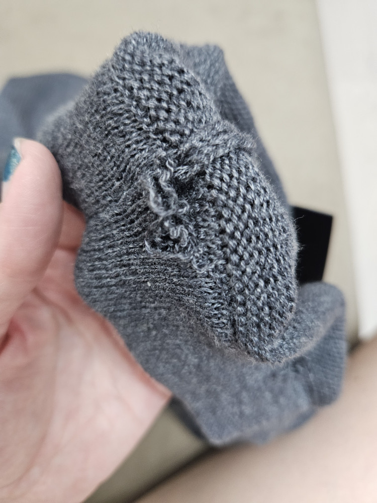 меня насторожило, что пояс свободный, оказалось самым грубым способом вытащили резинку с пояса, оставив дырки в трех местах, обидно, что я этикетку отрезала и потом увидела