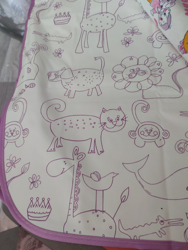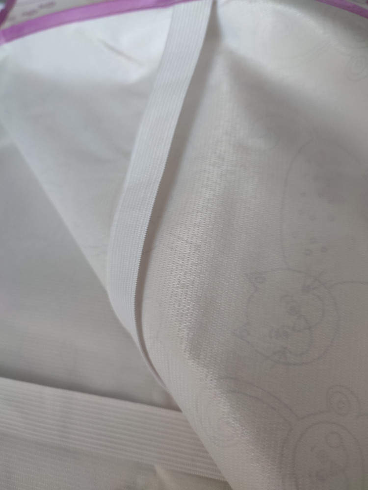 Клеенка хорошего качества,размер большой на всю кроватку идёт)с обратной стороны есть две резинки для закрепления на матрас.есть лёгкий запах,но выветрится за пару часов.