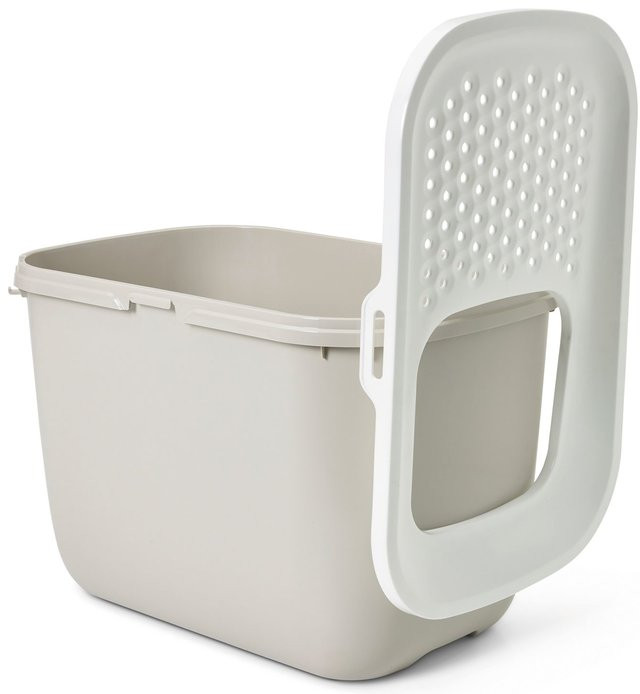Лоток качественный, большой, смотрится стильно, в интерьер вписался отлично. Кошки пошли в него практически сразу, мусора меньше, мимо наделать нереально, собаке с "вкусняшками" облом - не достанет.