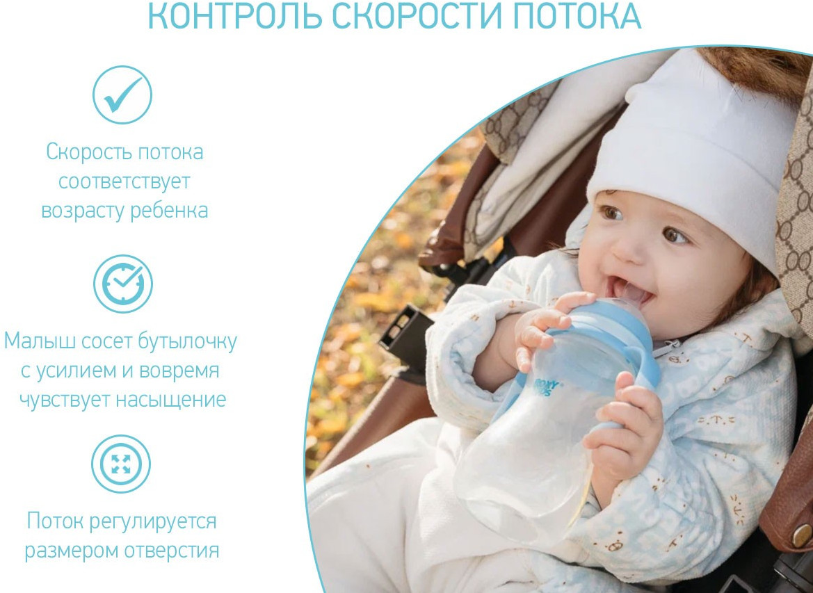ROXY-KIDS Бутылочка для кормления с антиколиковой соскойВ данный момент этот товар отсутствует в продаже. Возможно, у нас найдется аналогичный или похожий товар здесь. Детская антиколиковая бутылочка для кормления anti-colic bottle с силиконовой соской с широким горлом. Анатомическое основание повторяет форму материнской груди, что позволяет сочетать искусственное и грудное вскармливание, использовать для смеси, воды, молока и т.д. Скорость потока регулируется размером отверстия и точно соответствует возрасту ребенка. Противоколиковый клапан предотвращает чрезмерное заглатывание воздуха и возникновения колик. Бутылочка против коликов имеет удобную для захвата форму. Маленький объем исключает возможность перекармливания. Разборная конструкция и широкое горлышко диаметром пять сантиметров обеспечивают простой уход. Легкий корпус бутылочки сделан из полипропилена — можно стерилизовать кипячением. Выпуклая мерная шкала изделия не стирается. |