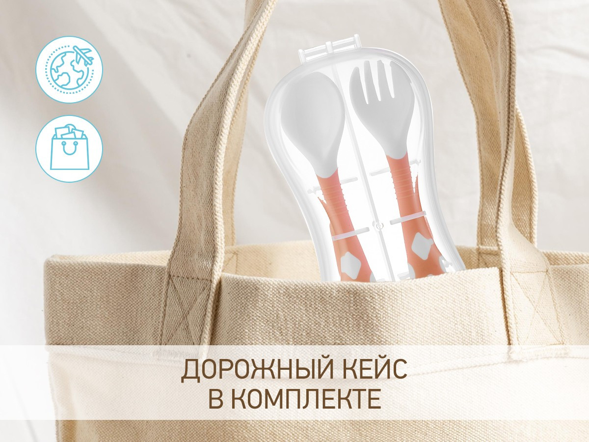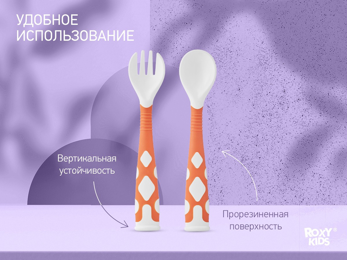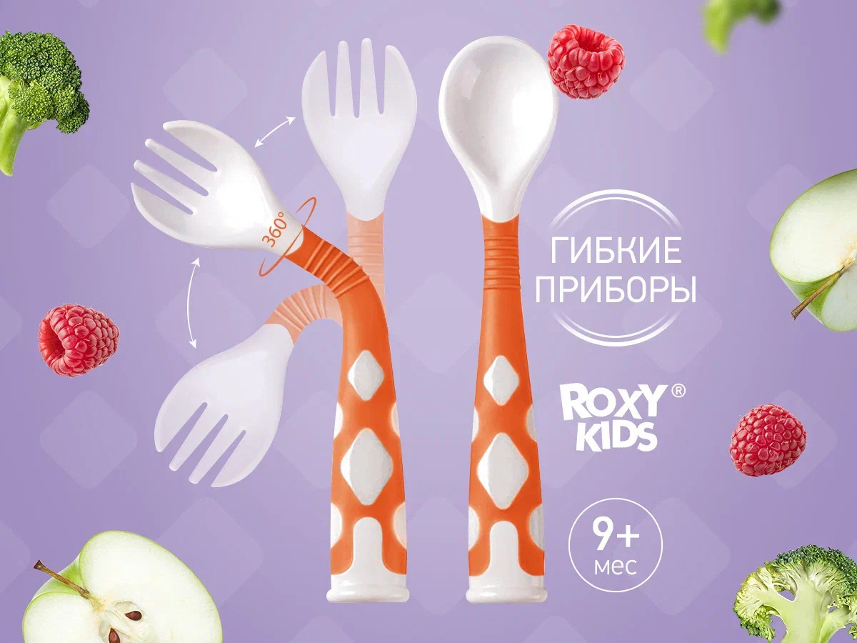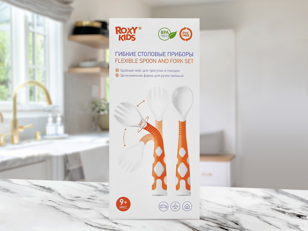 Гибкая ручка приборов разработана специально для малышей от девяти месяцев, которые только учатся держать ложку. Когда дети ещё не умеют держать столовые приборы по-взрослому, ложку и вилку можно изогнуть так, чтобы им было удобнее схватить ручку целиком в кулачок и поднести еду ко рту. По мере взросления ручки приборов можно разогнуть, чтобы научить ребенка правильно держать любимую ложку для прикорма. Прочный дорожный кейс для хранения и переноски поможет сохранить детские столовые приборы в чистоте. Прорезиненная поверхность для крепкого удобного захвата, не скользит в ручке. Скругленные гладкие края на детской ложке и вилке. Можно поставить вертикально, чтобы ложка и вилка не касались поверхности стола. Приятные цвета комплекта для кормления поднимут настроение маме, мальчикам и девочкам, а также станут прекрасным подарком детям на любой праздник. Товары повседневного пользования и игрушки от бренда ROXY-KIDS созданы с заботой и любовью о мамах и малышах!