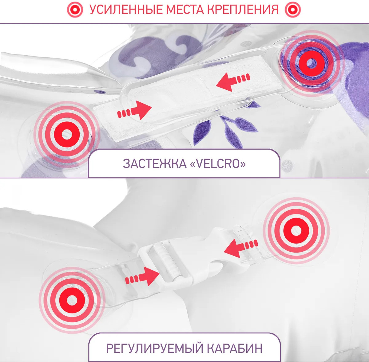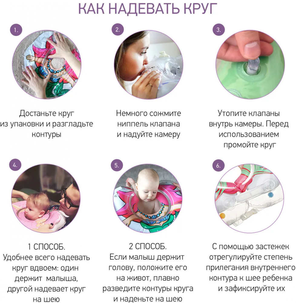 Круг имеет мягкий внутренний шов, который не будет натирать шею. Анатомическая выемка для подбородка позволяет удобно зафиксировать голову. Может использоваться в домашних условиях и на открытых водоемах глубиной не более 1 метра. В конструкции предусмотрен ниппель с обратным клапаном, который удержит воздух даже с открытым колпачком. В комплекте вы найдете сказку для малыша. Соответствует европейским стандартам качества и безопасности детских товаров.