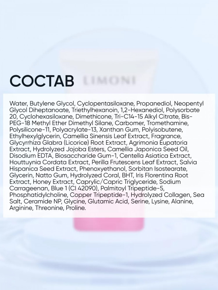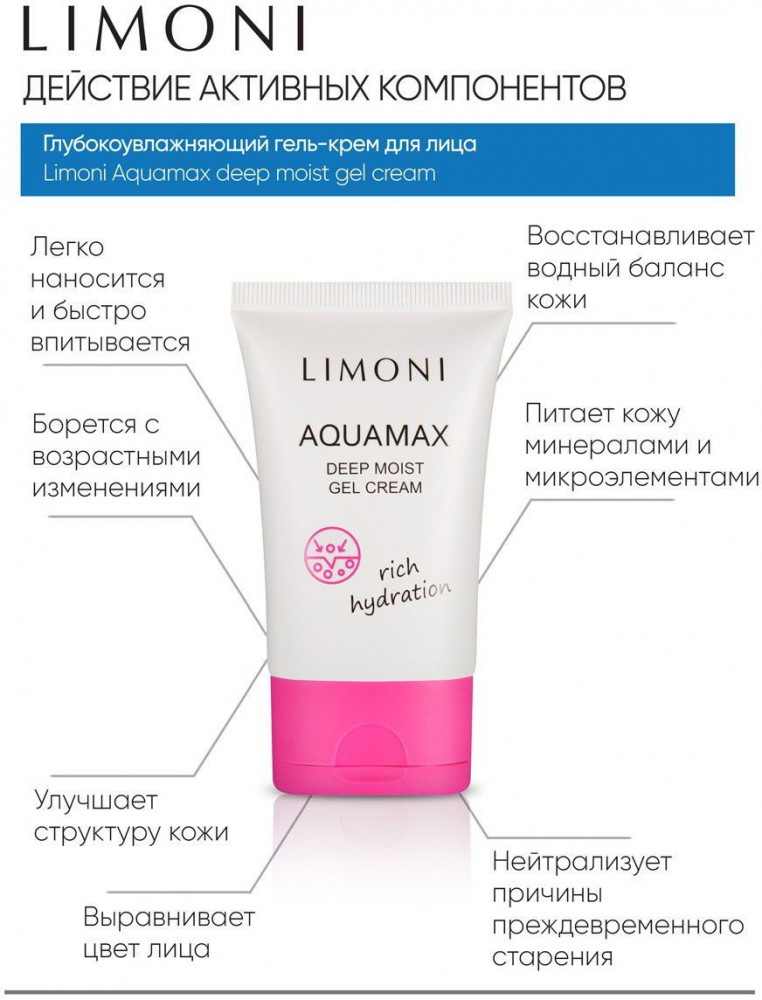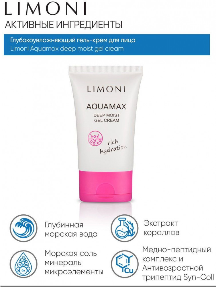 Limoni Гель-крем для лица глубокоувлажняющий-35% +144 без запаха гелевая текстура слабое увлажнение быстро высыхает